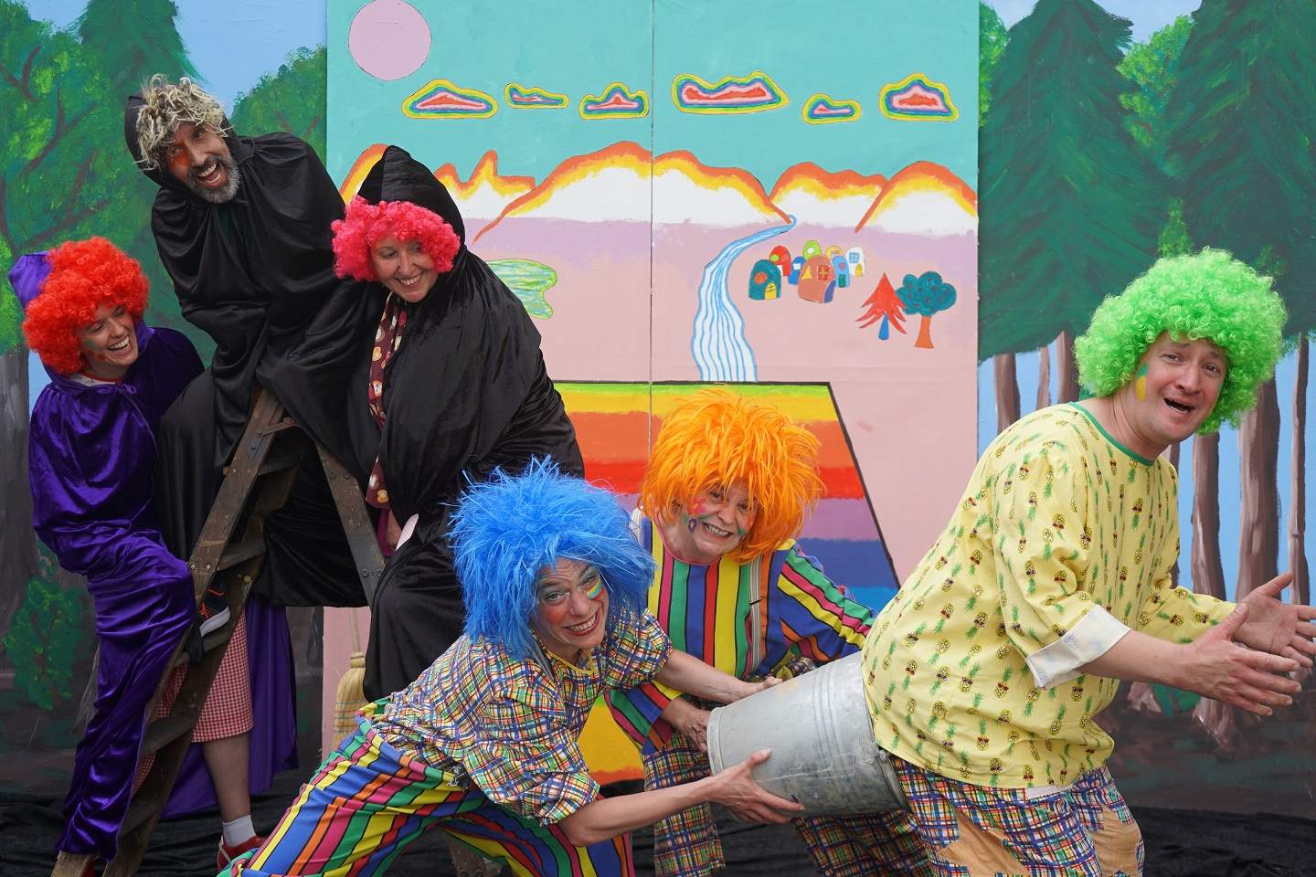 Schmollo Schmunzel, Louise Lachkrampf, Kiki Kichererbse, Willy Witzbold, Conny Krieskram, Schorchi Schaurig, Ulla Unkraut